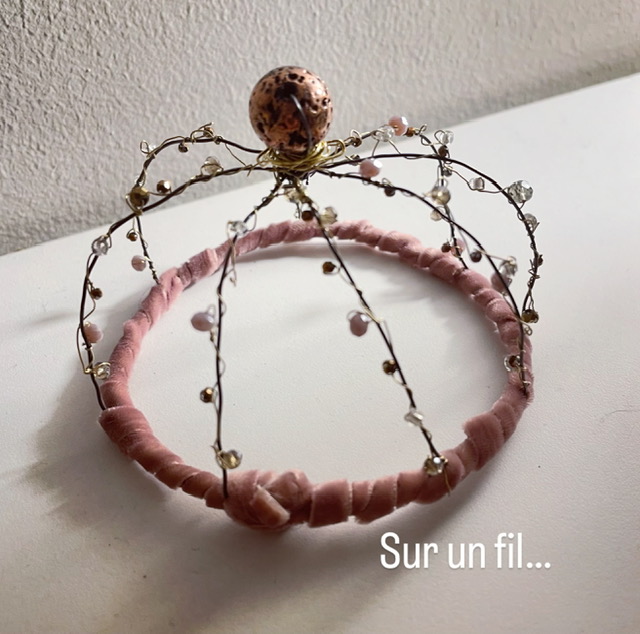 Traineau en fil de fer, perles  et paillettes à poser au mur